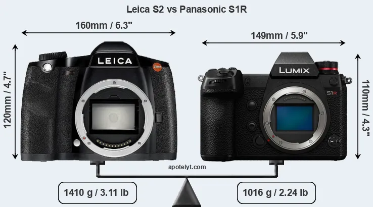 La Leica S2 e la Panasonic Lumix DC-S1R sono due fotocamere digitali rivelate al pubblico rispettivamente a settembre 2008 e febbraio 2019. Il S2 è una fotocamera DSLR, mentre S1R è una fotocamera mirrorless con obiettivo intercambiabile.Le fotocamere sono dotati di un sensore di medio formato (S2) e un sensore full frame (S1R). La Leica ha una risoluzione di 37,5 megapixel, mentre la Panasonic fornisce 46,7 MP.