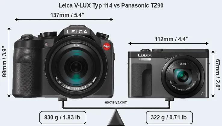 La Leica V-LUX (Typ 114) e la Panasonic Lumix DC-TZ90 sono due fotocamere digitali rivelate al pubblico rispettivamente a settembre 2014 e aprile 2017. Sia il V-LUX Typ 114 e il TZ90 sono fotocamere compatte con obiettivo integrato, che sono dotati di un sensore da 1 pollice (V-LUX Typ 114) e un sensore da 1/2,3 pollice (TZ90). La Leica ha una risoluzione di 20,0 megapixel, mentre la Panasonic fornisce 20,2 MP.