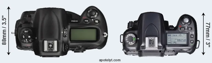 | 13. | Nikon D300 | 147 mm | 114 mm | 74 mm | 925 g | 1000 | Y | ago 2007 | US$ 1 799 | ebay.com | |