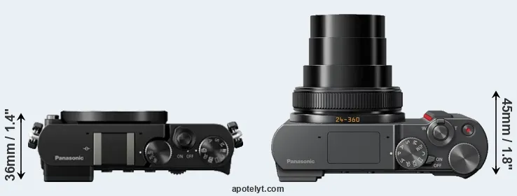 | 14. | Panasonic TZ90 | 112 mm | 67 mm | 41 mm | 322 g | 380 | n | apr 2017 | US$ 449 | ebay.com | |