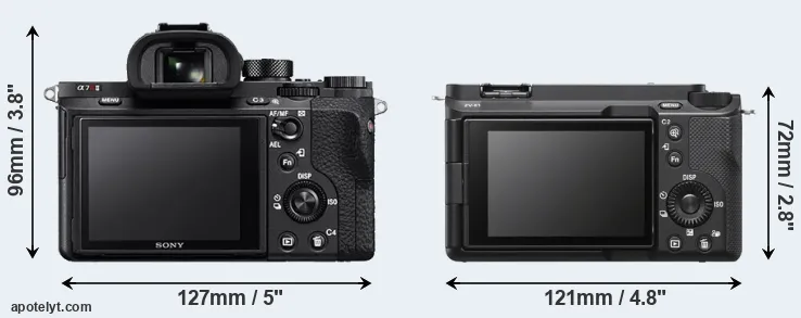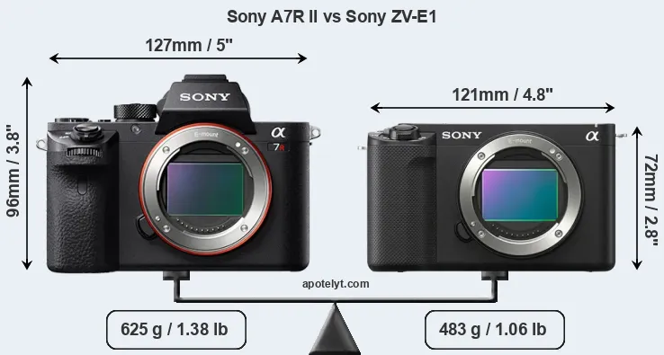 La dimensione fisica e il peso della Sony A7R II e Sony ZV-E1 sono illustrate nel grafico sottostante. Le due fotocamere vengono visualizzate in base alle loro dimensioni relative. Tutte le dimensioni sono arrotondate al millimetro più vicino.